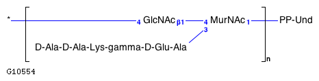(GlcNAc)1 (MurNAc)1 (*)1 (D-Ala-D-Ala-Lys-gamma-D-Glu-Ala)1 (PP-Und)1