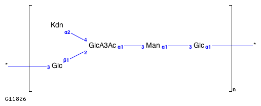 (Glc)2 (GlcA3Ac)1 (Kdn)1 (Man)1 (*)2
