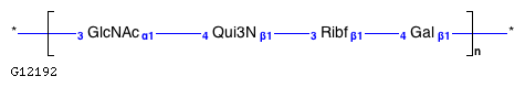 (Gal)1 (GlcNAc)1 (Qui3N)1 (Ribf)1 (*)2