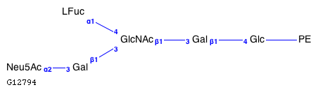 (Gal)2 (Glc)1 (GlcNAc)1 (LFuc)1 (Neu5Ac)1 (PE)1