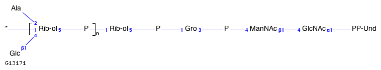 (Ala)1 (Glc)1 (GlcNAc)1 (Gro)1 (ManNAc)1 (Rib-ol)2 (*)1 (P)3 (PP-Und)1