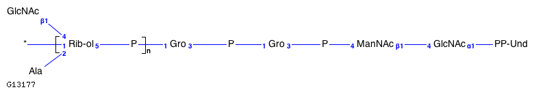 (Ala)1 (GlcNAc)2 (Gro)2 (ManNAc)1 (Rib-ol)1 (*)1 (P)3 (PP-Und)1