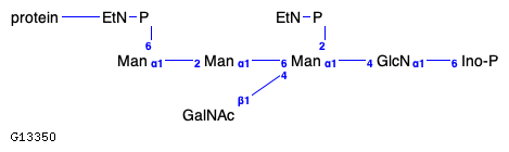 (GalNAc)1 (GlcN)1 (Man)3 (EtN)2 (P)2 (protein)1 (Ino-P)1