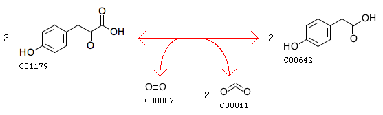 R00042 2 3-(4-Hydroxyphenyl)pyruvate + Oxygen <=> 2 4-Hydroxyphenylacetate + 2 CO2