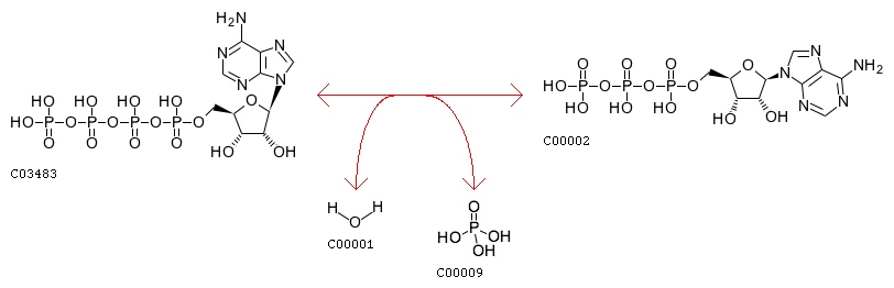 R00128 Adenosine tetraphosphate + H2O <=> ATP + Orthophosphate