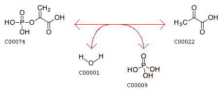 R00208 Phosphoenolpyruvate + H2O <=> Pyruvate + Orthophosphate