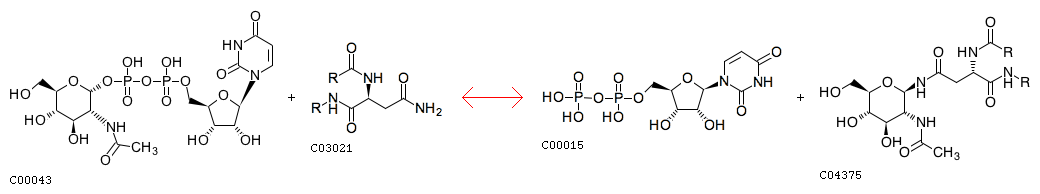 UDP-N-acetyl-alpha-D-glucosamine + Protein asparagine <=> UDP + 4-N-(N-Acetyl-D-glucosaminyl)-protein