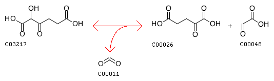R00474 2-Hydroxy-3-oxoadipate + CO2 <=> 2-Oxoglutarate + Glyoxylate