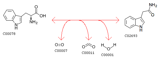 R00679 L-Tryptophan + Oxygen <=> (Indol-3-yl)acetamide + CO2 + H2O