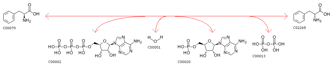 R00686 ATP + L-Phenylalanine + H2O <=> AMP + Diphosphate + D-Phenylalanine