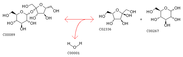 R00802 Sucrose + H2O <=> beta-D-Fructose + alpha-D-Glucose