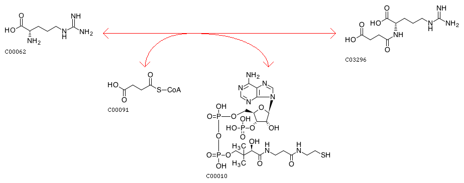 R00832 Succinyl-CoA + L-Arginine <=> CoA + N2-Succinyl-L-arginine
