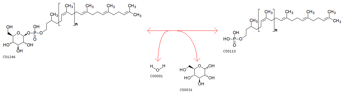 R01006 Dolichyl beta-D-glucosyl phosphate + H2O <=> Dolichyl phosphate + D-Glucose