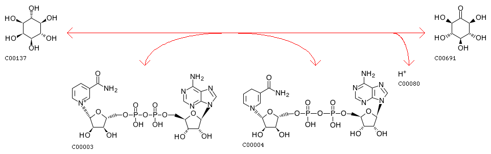 R01183 myo-Inositol + NAD+ <=> 2,4,6/3,5-Pentahydroxycyclohexanone + NADH + H+