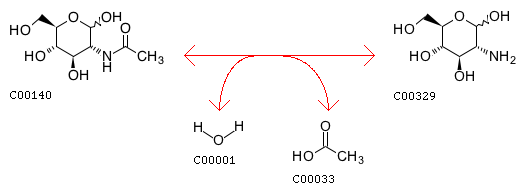 N-Acetyl-D-glucosamine + H2O <=> D-Glucosamine + Acetate