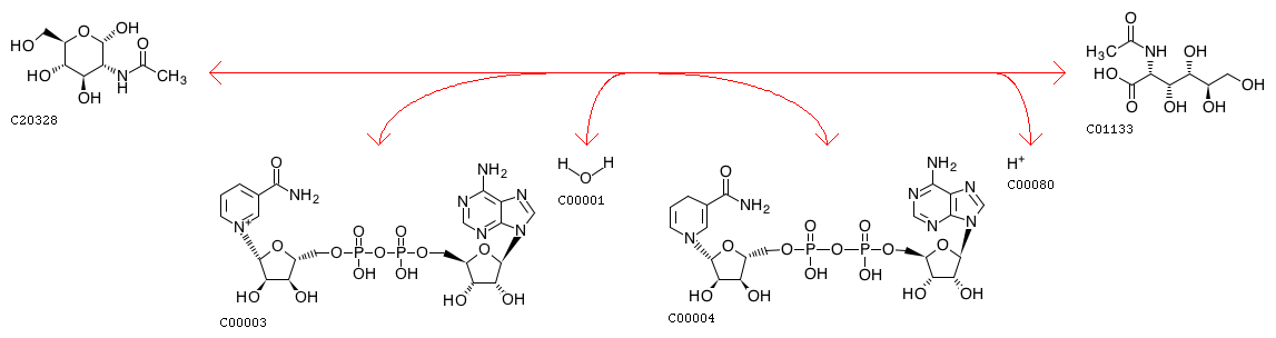 R01202 N-Acetyl-alpha-D-glucosamine + NAD+ + H2O <=> N-Acetyl-D-glucosaminate + NADH + H+