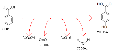 R01295 Benzoate + [Reduced NADPH---hemoprotein reductase] + Oxygen <=> 4-Hydroxybenzoate + [Oxidized NADPH---hemoprotein reductase] + H2O