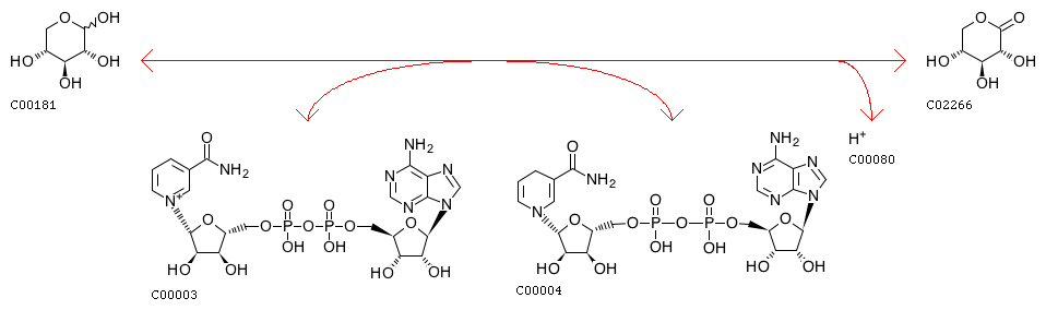 R01429 D-Xylose + NAD+ <=> D-Xylonolactone + NADH + H+