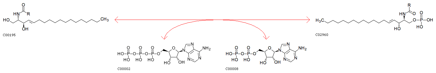 R01495 ATP + N-Acylsphingosine <=> ADP + Ceramide 1-phosphate