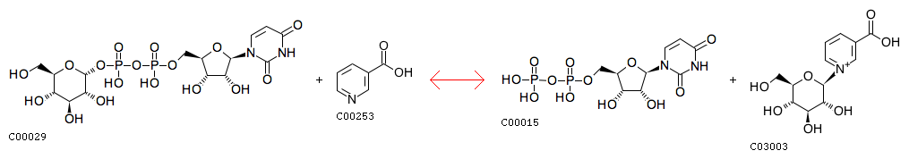 R01722 UDP-glucose + Nicotinate <=> UDP + N-Glucosylnicotinate