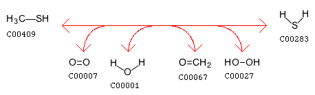 R01851 Methanethiol + Oxygen + H2O <=> Hydrogen sulfide + Formaldehyde + Hydrogen peroxide