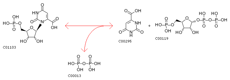 R01870 Orotidine 5'-phosphate + Diphosphate <=> Orotate + 5-Phospho-alpha-D-ribose 1-diphosphate