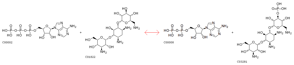 R01888 ATP + Kanamycin A <=> ADP + Kanamycin A 3'-phosphate