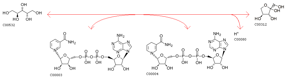 R01903 L-Arabitol + NAD+ <=> L-Xylulose + NADH + H+