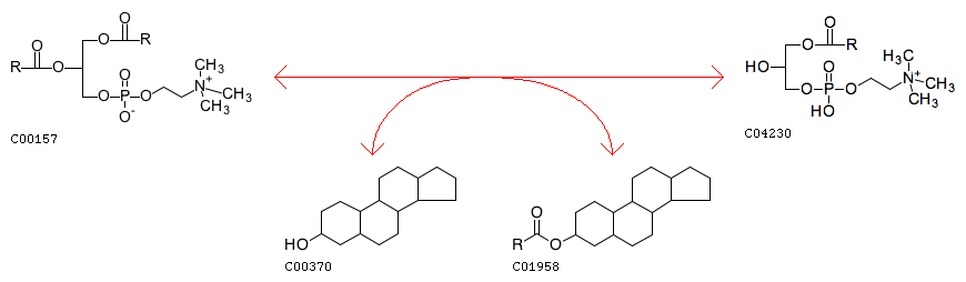 Phosphatidylcholine + Sterol <=> 1-Acyl-sn-glycero-3-phosphocholine + Steryl ester