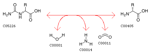 R02190 N-Carbamoyl-D-amino acid + H2O <=> D-Amino acid + Ammonia + CO2