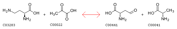 L-2,4-Diaminobutanoate + Pyruvate <=> L-Aspartate 4-semialdehyde + L-Alanine