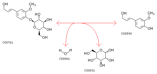 R02595 Coniferin + H2O <=> Coniferyl alcohol + D-Glucose