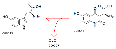 R02702 5-Hydroxy-L-tryptophan + Oxygen <=> 5-Hydroxy-N-formylkynurenine