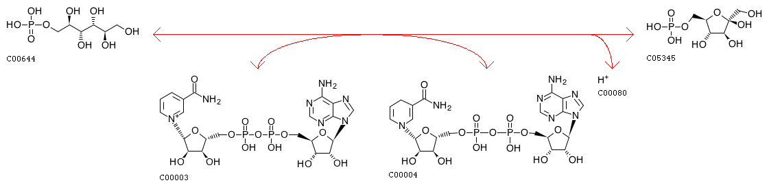R02703 D-Mannitol 1-phosphate + NAD+ <=> beta-D-Fructose 6-phosphate + NADH + H+