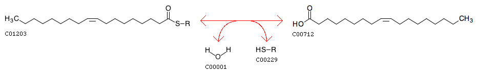 R02814 Oleoyl-[acyl-carrier protein] + H2O <=> Acyl-carrier protein + (9Z)-Octadecenoic acid