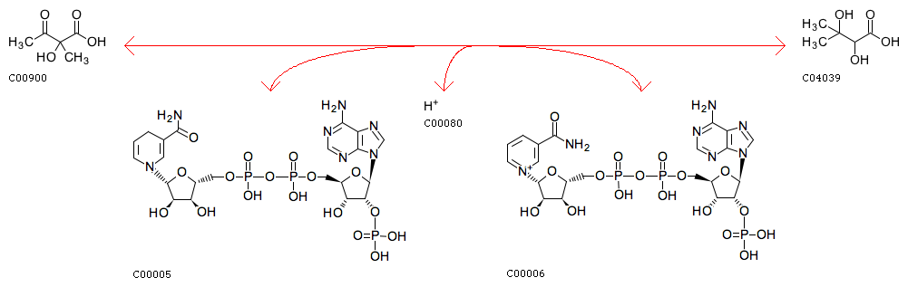 R03051 2-Acetolactate + NADPH + H+ <=> 2,3-Dihydroxy-3-methylbutanoate + NADP+