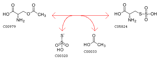R03132 O-Acetyl-L-serine + Thiosulfate <=> S-Sulfo-L-cysteine + Acetate
