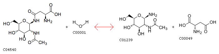 R03421 N4-(Acetyl-beta-D-glucosaminyl)asparagine + H2O <=> N-Acetyl-beta-D-glucosaminylamine + L-Aspartate