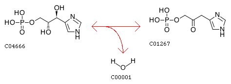 R03457 D-erythro-1-(Imidazol-4-yl)glycerol 3-phosphate <=> 3-(Imidazol-4-yl)-2-oxopropyl phosphate + H2O