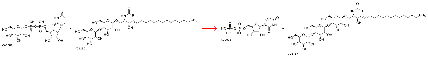 UDP-alpha-D-galactose + Lactosylceramide <=> UDP + alpha-D-Galactosyl-(1->4)-beta-D-galactosyl-(1->4)-beta-D-glucosyl-(1<->1)-ceramide
