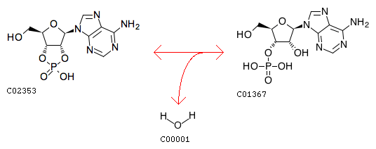R03537 2',3'-Cyclic AMP + H2O <=> 3'-AMP