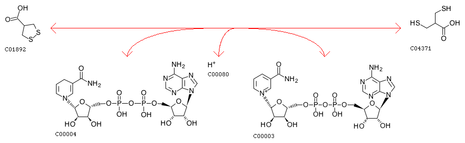 R03761 Asparagusate + NADH + H+ <=> 3-Sulfanyl-2-(sulfanylmethyl)propanoate + NAD+