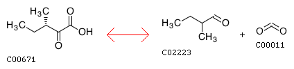 (S)-3-Methyl-2-oxopentanoic acid <=> 2-Methylbutanal + CO2