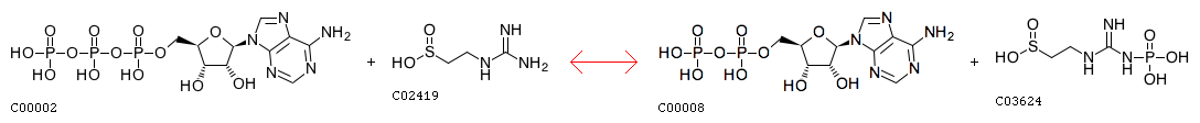 R03939 ATP + Hypotaurocyamine <=> ADP + N-Phosphohypotaurocyamine