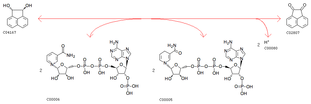 R04059 (+/-)-trans-Acenaphthene-1,2-diol + 2 NADP+ <=> Acenaphthenequinone + 2 NADPH + 2 H+