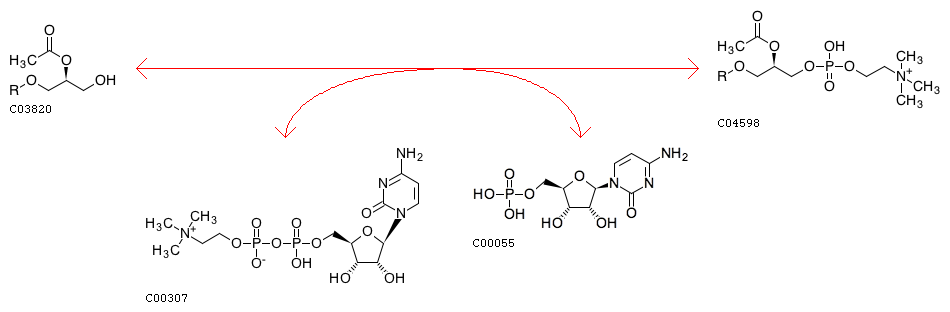 R04321 CDP-choline + 1-Alkyl-2-acetyl-sn-glycerol <=> CMP + 2-Acetyl-1-alkyl-sn-glycero-3-phosphocholine