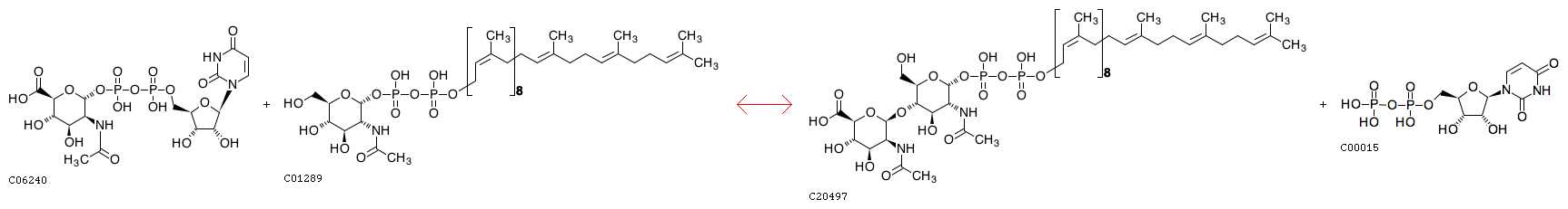 R04477 UDP-N-acetyl-D-mannosaminouronate + N-Acetyl-D-glucosaminyldiphosphoundecaprenol <=> N-Acetyl-beta-D-mannosaminuronosyl-(1->4)-N-acetyl-alpha-D-glucosaminyl-diphospho-ditrans,octacis-undecaprenol + UDP