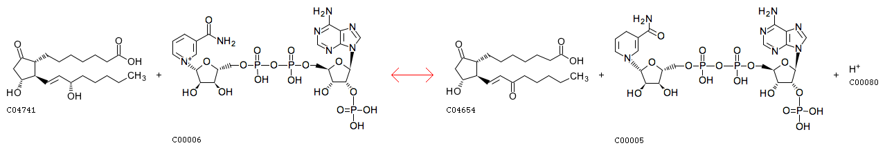R04552 Alprostadil + NADP+ <=> (13E)-11alpha-Hydroxy-9,15-dioxoprost-13-enoate + NADPH + H+