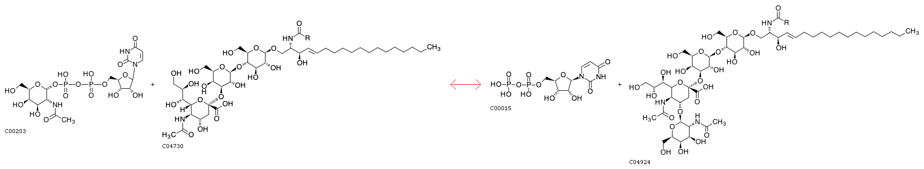 R04615 UDP-N-acetyl-D-galactosamine + GM3 <=> UDP + N-Acetyl-D-galactosaminyl-1,4-beta-N-acetylneuraminyl-2,3-alpha-D-galactosyl-1,4-beta-D-glucosylceramide
