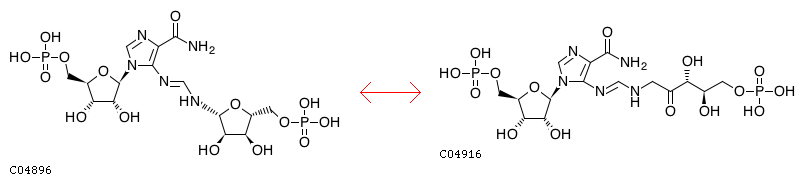R04640 5-(5-Phospho-D-ribosylaminoformimino)-1-(5-phosphoribosyl)-imidazole-4-carboxamide <=> N-(5'-Phospho-D-1'-ribulosylformimino)-5-amino-1-(5''-phospho-D-ribosyl)-4-imidazolecarboxamide